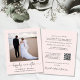 Günstige hellrosa Unterkunft oder kleine Hochzeitsankündigung und Empfang Einladung. Die Vorderseite zeigt Ihr Foto, "glücklich immer nachher" in einem stilvollen Kalligrafieschrift mit Swashes und Ihren Vornamen, Hochzeitstag und Ort. Auf der Rückseite, anpassen Sie Ihre Hochzeitsankündigung und Empfang oder Party Einladung, geben Sie Ihre Website-Adresse, um einen QR-Code für die Gäste zu scannen, um Ihre Hochzeitsfeier Fotos, alle Details und UAWG online und unterschreiben Sie Ihre verheirateten Namen in einem signaturähnlichen Skript.