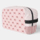 Discover this trendy coquette cosmetic bag! Our pretty pink and red bow and stripe pattern Dopp kit is a cute, feminine toiletry makeup bag, perfect as a gift for her, girls, daughters, or back to school.