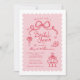 Rosa & rot Whimsical Retro Hand gezeichnete Brautdusche Einladung. Ein trendiger Stil mit niedlichen Bowdoodles, gestapelten Cocktailbrillen, Blume und High Heels, gepaart mit skurrilen und lustigen handgeschriebenen Schriftart auf einem skallopierten Hintergrund. Die Rückseite der Karte hat ein koordinierendes, durchgehendes Bogen-Muster, kann aber gelöscht werden. Alle Farben können von Ihnen bearbeitet werden! © Kimbellished, LLC