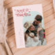 Vintage et simple carte de remerciements mariage avec cadre en arc blanc avec un texte qui dit "amour & merci" dans une police de style rétro avec étoiles en rose. Le message par défaut au verso est modifiable. Une deuxième photo de carré peut être ajoutée au dos de la carte.