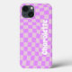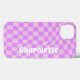 This design features a retro coral checker pattern and a spot for you to customize with your name in a trendy retro typography