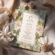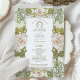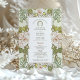 Dieses Vintag inspiriert Hochzeitsprogramm ist eine wunderschöne Repräsentation des Jugendstil-Designs mit eleganten Rosen und einem sanften grünen Blumenmotiv. Die Vorderseite der Karte empfängt die Gäste mit delikaten Blume, umgeben von wirbelnden grünen Weinreben, die eine natürliche und raffinierte Touch in die Gesamtgestaltung bringen. Der weiche beige Hintergrund kontrastiert perfekt mit den üppigen botanischen Elementen, während die subtile Verwendung von Goldakzenten eine Touch zeitlosen Luxus verleiht. Auf der anderen Seite sind die Details der Hochzeitsfeier im gleichen aufwändigen Blumendesign gerahmt, um ein einheitliches und künstlerisches Ambiente zu gewährleisten. Dieses Design ist ideal für Paare, die ein raffiniertes, elegantes und naturlich inspiriertes Hochzeitstil suchen.