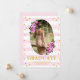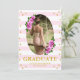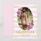 Pink roses graduation with pink and white stripes and gold confetti. Photo template via Pixabay licensed under CC0 and must be replaced with your own photo.