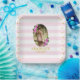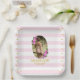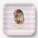 Pink roses graduation with pink and white stripes and gold confetti. Photo template via Pixabay licensed under CC0 and must be replaced with your own photo.