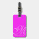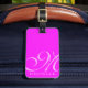 individueller rosa Gepäckanhänger mit Ledergurt: großes Skriptmonogramm und Name