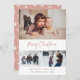 Benutzerdefiniert Rosa Frohe Weihnachtskarten mit drei Fotos mit einem handgeschriebenen Titel auf der Vorderseite und pastellrosa Hintergrund mit fallendem Schnee und Sternen auf der Rückseite. Diese Weihnachtskarten mit rosa Schrift können Sie ganz einfach mit Ihren Bildern, einem Familiennamen und dem Jahr personalisieren.