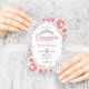 Rosa Silber Quinceanera Feier Einladung. Features, Script-Schriftart, Silberschmetterlinge, Aquarellfarben Rose und Tiara. Ideal für eine elegante Glasfeier im Prinzessinnstil. Personalisieren Sie Ihre persönlichen Daten. Gedruckte Zazzle-Einladungen oder Sofortdownload digitaler Druckvorlage.