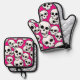 Pink Skull Pattern Ofenhandschuh & Topflappen-Set