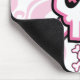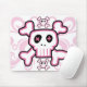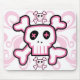 Rosa und schwarzer Schädel und Kreuzknochen mit rosa, wirbelfarbenem Hintergrund