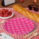 Pink Snowflakes Diagonal Square Muster Pappteller