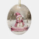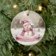 Dieser kleine Schneemann hat das schönste Lächeln und genießt seine Zeit im Winterschnee. "Frohe Weihnachten". Er ist alle im Urlaub in rosa Strick-Kappe gekleidet und hat einen knallgezackten Schal. Dies ist eine Vintage Wasserfarbe mit bearbeitbarem rosa Skripttext auf jeder Seite dieses Ornaments. Stellen Sie sicher, dass Sie den Familiennamen und das Datum des Beispiels so ändern, wie Sie es gewollt haben; diese erscheinen auf der Rückseite. Wir haben dieses Design auf der runden, Keramik-Ornament demonstriert. Allerdings sieht es auch bei einigen anderen Materialien und Formen gut aus.