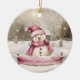 Pink Snowman Vintage Weihnachten Keramik Ornament