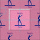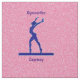 Wunderschöner, rosafarbener Hintergrund mit einer blauen Funkeln Gymnast-Silhouette auf Balancestrahl, sagt Gymnastik in lila Schriftart über dem Design und unten können Sie mit dem Namen Ihrer Wahl personalisieren oder Sie können wählen, die Personalisierungsbox leer verlassen, wenn Sie keinen Namen gewollt.