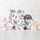 Aquarellfarben Frühling Blumenmuster Geschenkverpackung in Pastellfarben von Rosa und Blau.