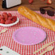 Paper plate with pink background and sprinkles print.
