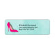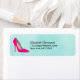Personalisierte Adressetiketten mit einem High Heel Stiletto-Schuh in heiß rosa. Set auf einem minzgrünen Aquarell.
