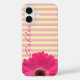 Eine hübsche personalisierbare gestreifte Telefonzelle mit einem rosa Gerber Daisy! Machen Sie die gelben Streifen zu jeder Farbe!