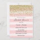 Invitation de douche nuptiale avec parties scintillant faux or et arrière - plan d'aquarelle à rayures roses.