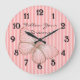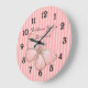 Pink Stripes with Butterfly Große Wanduhr