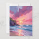 Pink Sunset Ocean Beach Waves Wasserfarbenkarte