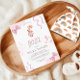 Feiern Sie Ihre Kleine mit der "Pink Teddy Bear Baby Shower Invitation". Dieses hübsche Design besticht durch einen zauberhaften Teddybär in sanften rosa Tönen, der sich ideal für eine warme und einladende Atmosphäre für Ihre Babydusche eignet. Der niedliche Bär und die sanften Pastellfarben machen diese Einladung ideal für einen zauberhaften und unvergesslichen Aufenthalt. Ob Sie eine intime Ansammlung oder ein größeres Event beherbergen, diese Einladung verleiht Ihrem besonderen Tag eine Touch von Süße und Freude. Personalisieren Sie es, um Ihre Babydusche wirklich einzigartig zu machen.