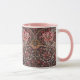Eine Kaffee-Tasse mit einem digital restaurierten Vintagen Design von William Morris (1834-1896), einem beliebten britischen Designer für Tapeten und Textilien. Die Kunst und das Handwerk sind geblümte Muster eines Honigsuckle und rosa Tulpen.