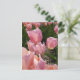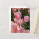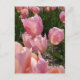 Rosa Tulpen in einem Blume-Bett mit Sonnenlicht in den Blättern.