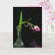 Single Pink Tulpe in Glasvase mit Perlenkette auf schwarz mit Regentropfen auf Fensterwirkung für allgemeines Beileid