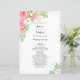 Pink Turquoise Floral Bouquet Programme de mariage