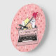 Pink Typewriter Cats Clock Große Wanduhr