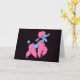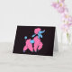 Eine farbenfrohe rosa und blaue Poodle-Grußkarte.