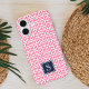 Unsere klassische rosa und marineblüffende Handydose ist einzigartig, mit Ihrem Single erste Monogramm ordentlich in das Design stecken! Das Gehäuse weist ein modernes, griechisches geometrisches Muster in hellcremefarbenem Rosa und Weiß auf, wobei das Monogramm auf einem viereckigen Abzeichen in Marineblau angezeigt wird.