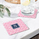 Fügen Sie mit unseren mit Monogramm Papier-Untersetzer einen maßgeschneiderten Stilmix in Ihr Bar cart-Styling-Setup ein. Unser prächtiges Design zeichnet sich durch ein modernes, griechisch inspiriertes geometrisches Muster in kräftigem Rosa und Weiß aus, mit dem ersten Monogramm Ihres Single in kontrastblau. Woll dieses Muster auf einem anderen Artikel, den du nicht in meinem Shop siehst, oder in einer speziell für dich erstellten Farbpalette? Kontaktieren Sie mich über den Link "Diesen Designer Gefragt" auf dieser Seite.