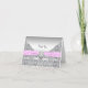 Elegantes bedrucktes rosa Satinband mit Diamantmitte und silberfarbenem Rautenüberlagerungen dank Karte.