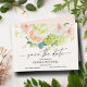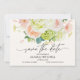 Schöne Aquarellfarben von weißen und grünen Hydrangeas mit rosa und cremefarbenen Rose, Gänseblüten und kleinen Blüten und Blätter erstellen diese Hochzeit speichern die Dattelkarten mit Ihren Details in schicken Schriften. PASSENDE Artikel in unserem Geschäft.