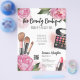 Rosa, florale Wasserfarbe Makeup Artist Flyer. Dieses visuelle Fest mit seinen lebhaften Farben und seinen kahmen Blüten eignet sich hervorragend für Make-up-Künstler, Schönheitsblogger, Einflusspersonen und alle, die eine Touch von farbenprächtiger Blumen-Eleganz mit einer Touch Glam suchen. Mit rosafarbenen Peonies, Schminkpalette, Schminkbürsten und Lippenstift. Sie können den gesamten Text und den QR-Code anpassen - Sie können auch die QR entfernen, wenn Sie es vorziehen. Ideal für die Buchung von Terminen, Kosmetologiekursen, Sonderveranstaltungen und vieles mehr!