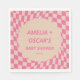 Pink Wavy Checker Couples Baby Shower Names Serviette