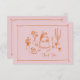 Dieses hellrosa/pfirsichfarbene Brautparty basiert auf dem beliebten handgezeichnet Trend, der französische oder italienische Speisen und Getränke in einem skurrilen, doodle, scribble Stil anbietet. Dieses Design ist ideal für einen Brautbrunch. Es zeigt handgezeichnete Illustrationen einer Vase aus Blume, Champagner, Tassen und Untertassen, Pfannkuchen und Kuchen.
