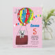 Pink Whimsical Hot Air Ballon Katze Geburtstag Einladung