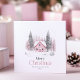Diese hübsche Weihnachtsgrüßkarte zeigt eine sanfte Aquarellillustrierung einer rosa Hütte, eingebettet zwischen schneebedeckten Evergreens und kahlen Winterbäumen. Der elegante "Frohe Weihnachten"-Gruß wird in einem zarten Serif-Schriftart gedruckt, der eine gemütliche und festliche Touch verleiht. Diese Karte mit Familiennamen und Datteln ist ideal, um Freunden und Familie gemütliche Urlaubswünsche zu senden, Freude und Fröhlichkeit in ihre Festsaison zu bringen.