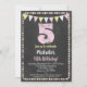 Une invitation funky à 5ème anniversaire rose et jaune de tableau noir avec du texte de craie croustillant en haut avec un arrière - plan de tableau noir, des drapeaux et une jolie bordure de pois-pois.