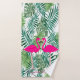 Pinkfarbene Flamingos in Liebe, Palm-Blätter Badhandtuch Set