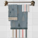 Personnalisez une serviette d'hôtel avec un nom ou un autre texte et ajoutez du brio à votre salle de bain à thème rustique avec cette serviette imprimée d'un motif aux formes primitives de pins. Choisissez le jeu ou sépare dans le menu déroulant. Créé dans les tons de terre de tan, bleu clair gris et gris ardoise foncé sur un arrière - plan gris et des accents de bordure correspondants. Voir d'autres éléments de coordination dans cette collection de design sur Zazzle.