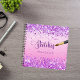 Ein rosa Farbverlauf. Dekoriert mit rosa Konfetti.. Personalisieren und fügen Sie einen Namen, Der Titel: Sketchbook geschrieben mit einem mädchenhaften, handgeschriebenen Stil Skript mit Swashes und ein Pinsel. Lila Buchstaben. Ein Notizbuch für Zeichnungen, Skizzen, Noten und Hausaufgaben in der Schule.