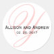 Einfache, elegante, rosa und weiße Script Monogram Gastgeschenk Hochzeit Sticker oder Save the Date Umschlag Aufkleber. Von Elke Clarke©2009. Passen Sie Ihren Familiennamen an, die Namen der Braut und des Bräutigams sowie das Hochzeitstermin. Verwenden Sie zum Siegel Ihrer Hochzeitseinladung Umschläge oder fügen Sie zu Ihren Gastgeschenke Hochzeiten. Benutzen Sie das "Anpassen"-Menü, um den Abstand zu ändern, wenn Sie den Buchstaben ändern.
