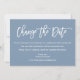 Modernes Pinselskript ändert das Datum Hochzeit verschoben Karte trostlos blau
