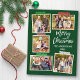 Modernes Pinselskript Frohe Weihnachten 5 Foto Collage mit Craft Tape Holiday Postcard. Grüner Hintergrund des Waldes.