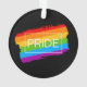 Dieses Kunstwerk hat einen bunten Regenbogen mit dem Wort Pride.