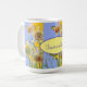 Handgemalte, gelb rosafarbene, blumenreiche Tasse mit einem vollständig anpassbaren Damennamen. Ein wunderschönes Blumendesign in Aquarelltönen. Entworfen aus meinen ursprünglichen Aquarellbildern, die ich aus meinem eigenen Blumengarten gemalt habe.