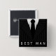 © Sunny Mars Designs - Pinstripe Anzug: Das Abzeichen des Trauzeugen Black and Gray Square - Cooler, maßgeschneiderter, eleganter, stilvoller Bachelor-Party-Trauzeuge-Backbutton mit einer männlichen Business-Button-Backtaste, schwarz-grauem Button-Stripe-Anzug, schwarze Krawatte und Knöpfe. Perfektes Geschenk für Ihren Trauzeuge, Trauzeuge, Uher, Ringträger oder jeden Mann in Ihrer Hochzeitsfeier Achelorparty.